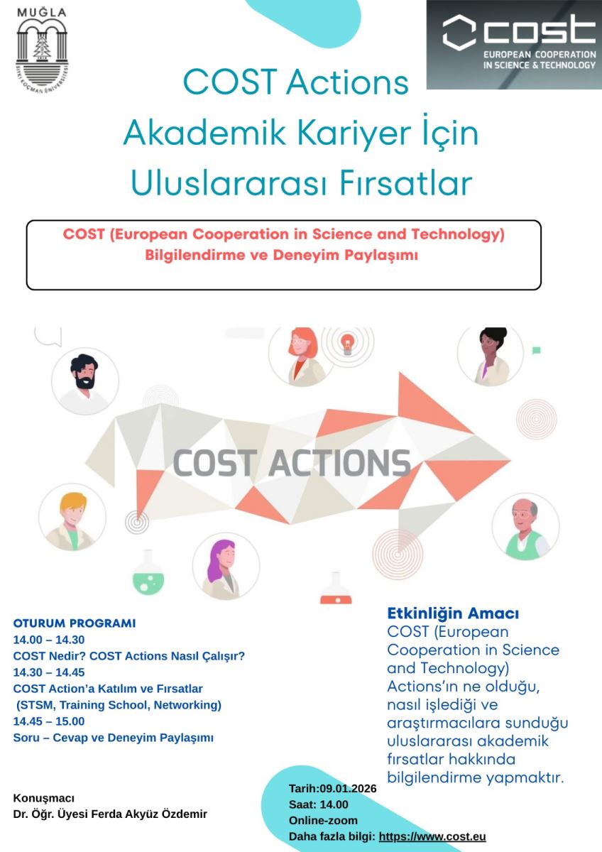 COST Actions - Akademik Kariyer İçin Uluslararası Fırsatlar Etkinlik raporuna erişmek için tıklayınız. Son Güncelleme : 14.01.2026 14:16